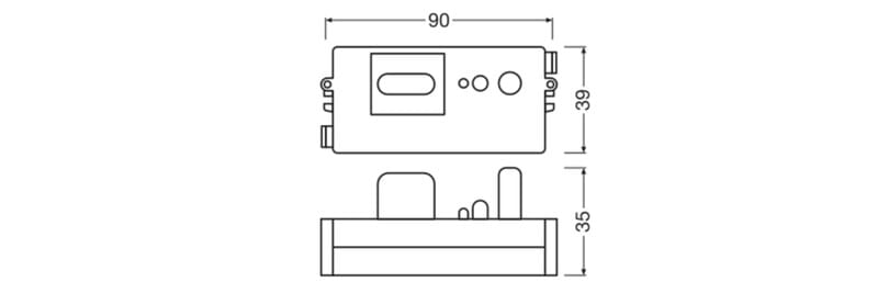 LEDVANCE SURFACE FLAT SENSOR liike- ja hämärätunnistin Leader-Follower -ominaisuudella LEDVANCE Surface Flat -valaisimiin. Mitat: 90 x 39 x 35 mm.