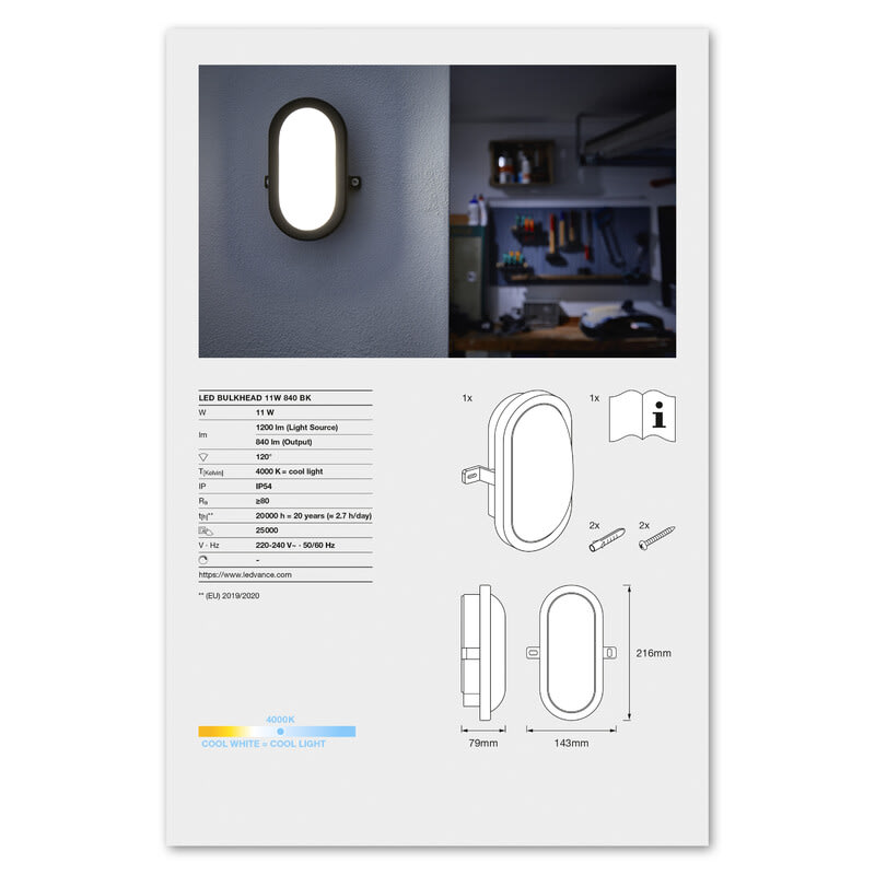 LEDVANCE - Seinä/kattovalaisin ulko - LED Bulkhead 11W 840 BK