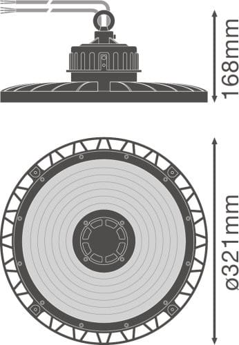 LEDVANCE HIGH BAY PERFORMANCE DALI 190W 4000K 110DEG IP65 -syväsäteilijä. Valaisimen valovirta on 27000 lm ja avauskulma 110 ast. Valaisin on IP65- ja IK08-luokiteltu. Valaisimen halkaisija 321 mm ja korkeus 168 mm. Keskimääräinen käyttöikä 80000 tuntia. LEDVANCE HIGH BAY PERFORMANCE -syväsäteilijät täyttävät paremman valotehokkuuden ja käyttöiän myötä ammattilaisten vaativammatkin vaatimukset. Syväsäteilijät on varustettu kiinteällä 1,5 metriä pitkällä liitosjohdolla ja ne ovat valmistettu kestävästä polykarbonaatista ja alumiinista. Lisätarvikkeena tilattavat alumiiniset ja kirkaat heijastimet laajentavat valaisimien käyttökohdevalikoimaa. Pidempi käyttöikä ja jopa 6 kV:n ylijännitesuojaus parantaa valaisimien luotettavuutta.