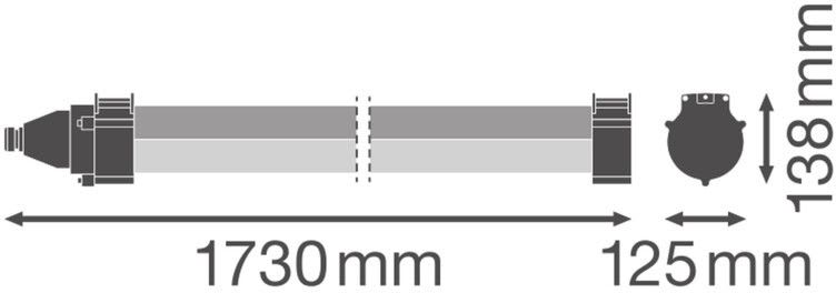 - Mitat (Pituus/leveys/korkeus): 1730 x 125 x 138 mm