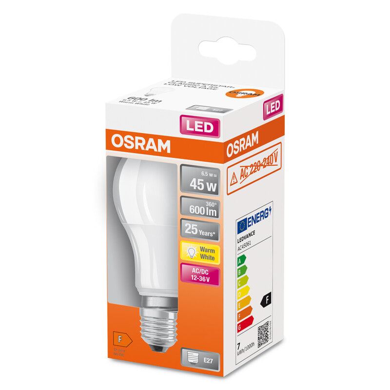 LEDVANCE - Vakiolamppu - CLA 7W/827 600lm E27 OP 12-36V