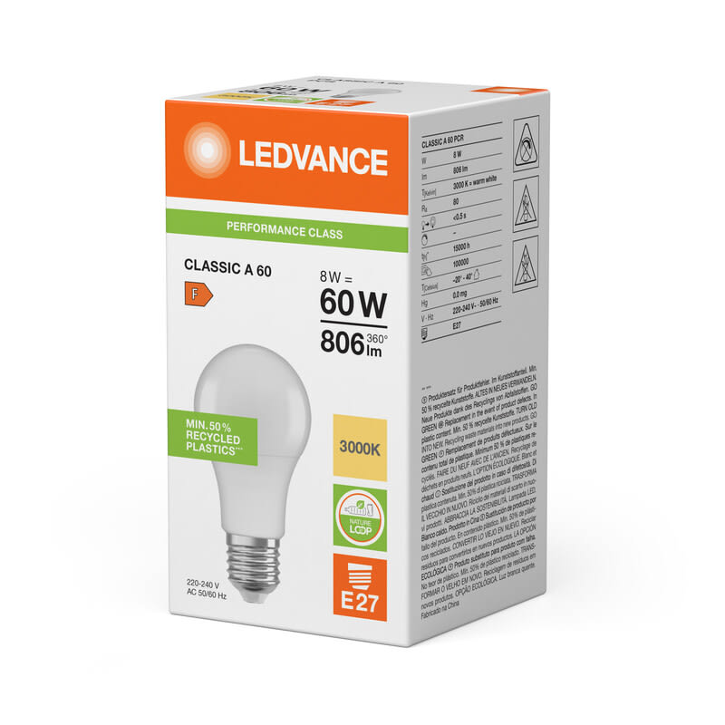 LEDVANCE - Vakiolamppu - CLA 8W/830 806lm E27 OP