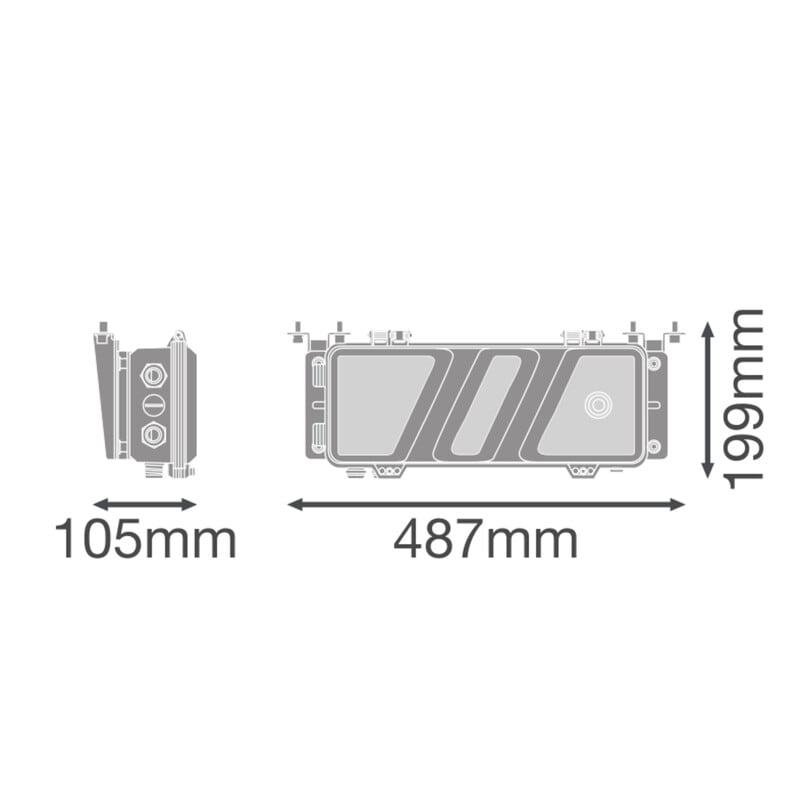 - Mitat (Pituus/leveys/korkeus): 487 x 105 x 199 mm