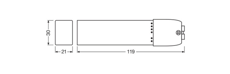 - Mitat (Pituus/leveys/korkeus): 119 x 30 x 21 mm