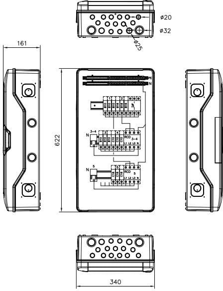 LEGRAND FINLAND - Ryhmäkeskus PC - 2xVVS 9x10A 6x16A IP65 63A