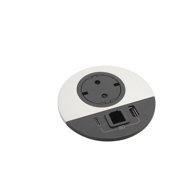 Incara Disq 80 yhdistää mobiilikäyttäjille olennaiset toiminnot yhteen paikkaan. USB A+C -pistoke 15 W latausteholla sekä RJ45 Cat 6 UTP-verkkoliitäntä tai kaapeliläpivientiaukko. Asennetaan huonekaluissa yleisimmin käytettävään Ø80 mm:n aukotukseen. Ainutlaatuinen patentoitu Legrand-sukopistorasiamekanismi säilyttää pinnan tasaisena kun se ei ole käytössä. Tasainen pinta helpottaa puhtaanapitoa ja näyttää hyvältä. Saatavilla suko- tai Wieland-pistoliitinjohdolla.