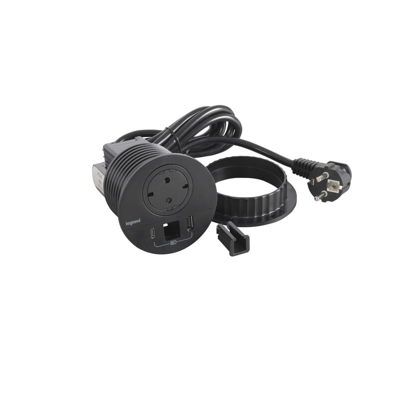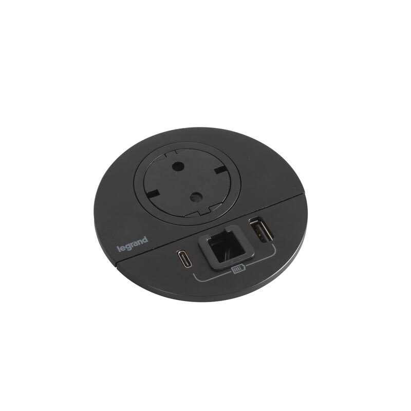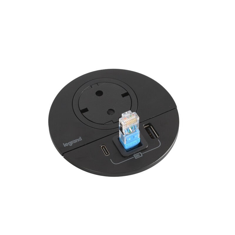 Incara Disq 80 yhdistää mobiilikäyttäjille olennaiset toiminnot yhteen paikkaan. USB A+C -pistoke 15 W latausteholla sekä RJ45 Cat 6 UTP-verkkoliitäntä tai kaapeliläpivientiaukko. Asennetaan huonekaluissa yleisimmin käytettävään Ø80 mm:n aukotukseen. Ainutlaatuinen patentoitu Legrand-sukopistorasiamekanismi säilyttää pinnan tasaisena kun se ei ole käytössä. Tasainen pinta helpottaa puhtaanapitoa ja näyttää hyvältä. Saatavilla suko- tai Wieland-pistoliitinjohdolla.