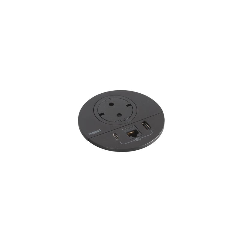 Incara Disq 80 yhdistää mobiilikäyttäjille olennaiset toiminnot yhteen paikkaan. USB A+C -pistoke 15 W latausteholla sekä RJ45 Cat 6 UTP-verkkoliitäntä tai kaapeliläpivientiaukko. Asennetaan huonekaluissa yleisimmin käytettävään Ø80 mm:n aukotukseen. Ainutlaatuinen patentoitu Legrand-sukopistorasiamekanismi säilyttää pinnan tasaisena kun se ei ole käytössä. Tasainen pinta helpottaa puhtaanapitoa ja näyttää hyvältä. Saatavilla suko- tai Wieland-pistoliitinjohdolla.