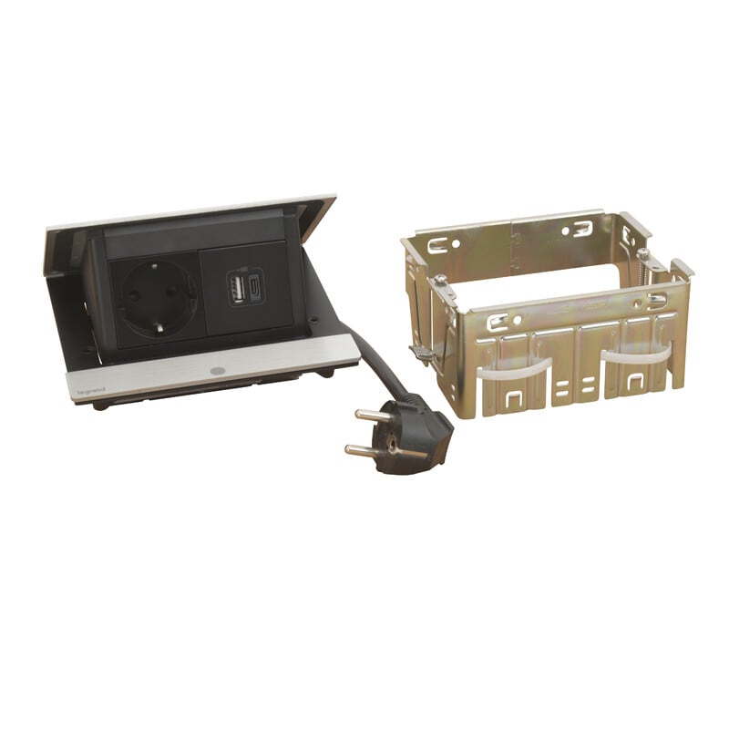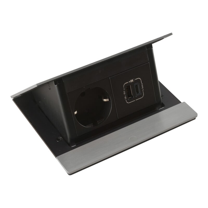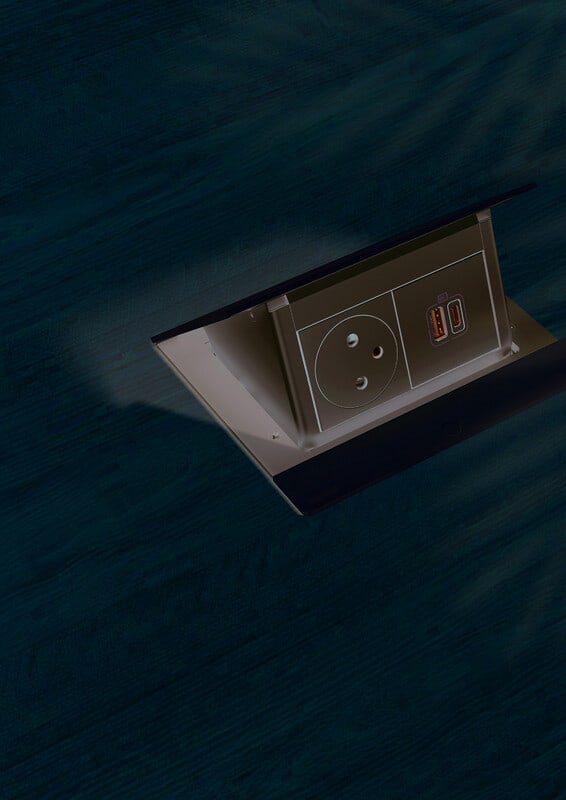 Incara Pop-up kätkee viimeistellyn kannen alle työ- tai neuvottelupöydän tärkeimmät liitännät. Valmiiden mallien lisäksi voit kalustaa myös oman version laajasta Mosaic-asennuskalustevalikoimasta. Ohut kansi sulautuu huomaamattomasti huonekaluihin. Mekanismi vie vähän tilaa, joten sen voi sijoittaa vetolaatikon yläpuolelle. Runkovaihtoehdot, 4, 2x4 sekä 8 moduulia, joko valmiiksi kalustettuna tai kalustamattomana versiona. Myös IP44-kannella (suljettuna) tai langattomalla latausalustalla.