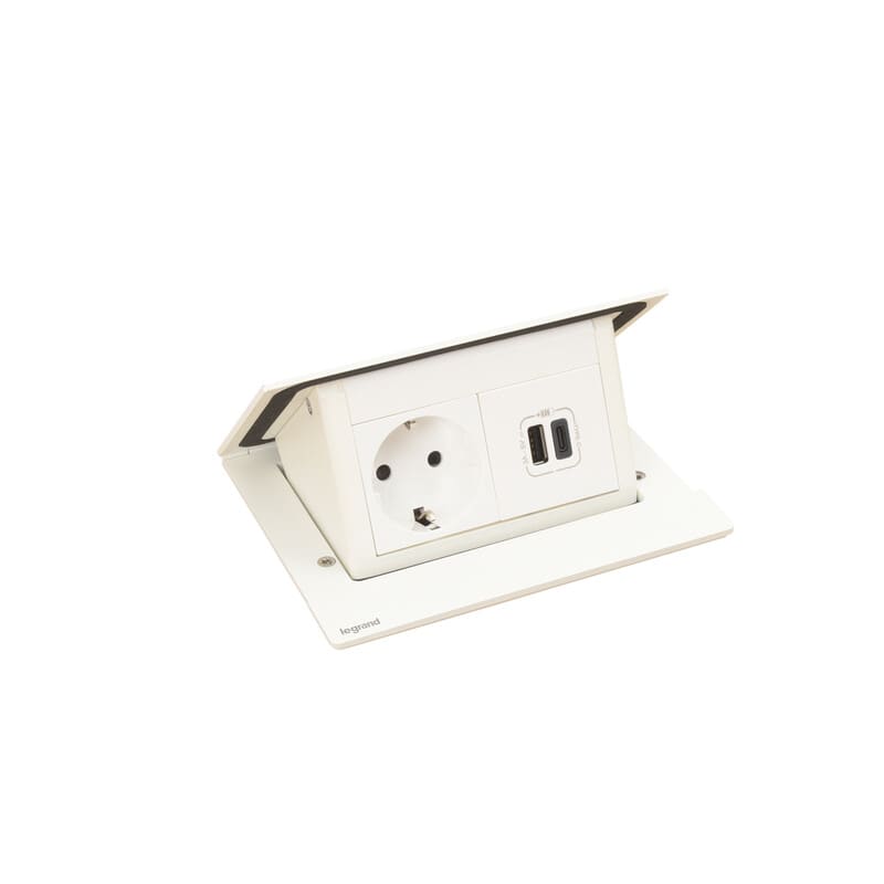 Incara Pop-up kätkee viimeistellyn kannen alle työ- tai neuvottelupöydän tärkeimmät liitännät. Valmiiden mallien lisäksi voit kalustaa myös oman version laajasta Mosaic-asennuskalustevalikoimasta. Ohut kansi sulautuu huomaamattomasti huonekaluihin. Mekanismi vie vähän tilaa, joten sen voi sijoittaa vetolaatikon yläpuolelle. Runkovaihtoehdot, 4, 2x4 sekä 8 moduulia, joko valmiiksi kalustettuna tai kalustamattomana versiona. Myös IP44-kannella (suljettuna) tai langattomalla latausalustalla.