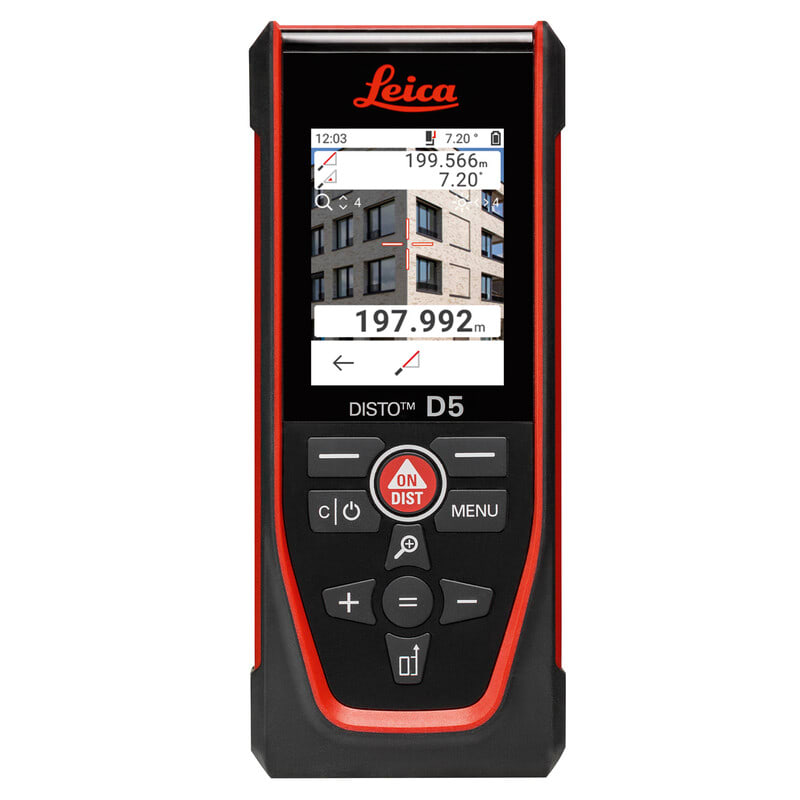 Leica DISTO D5 laseretäisyysmittari soveltuu etäisyyksien mittaukseen sekä sisä- että ulkotiloissa, jopa 200 metriin asti. Digitaalisen tähtäinjärjestelmän (Pointfinder) ansiosta kohteen osoittaminen onnistuu helposti myös kirkkaassa auringonpaisteessa ja pitkillä etäisyyksillä. Sekä kohde että mittaustulokset näkyvät selkeästi suuressa IPS-teknologialla varustetussa näytössä.