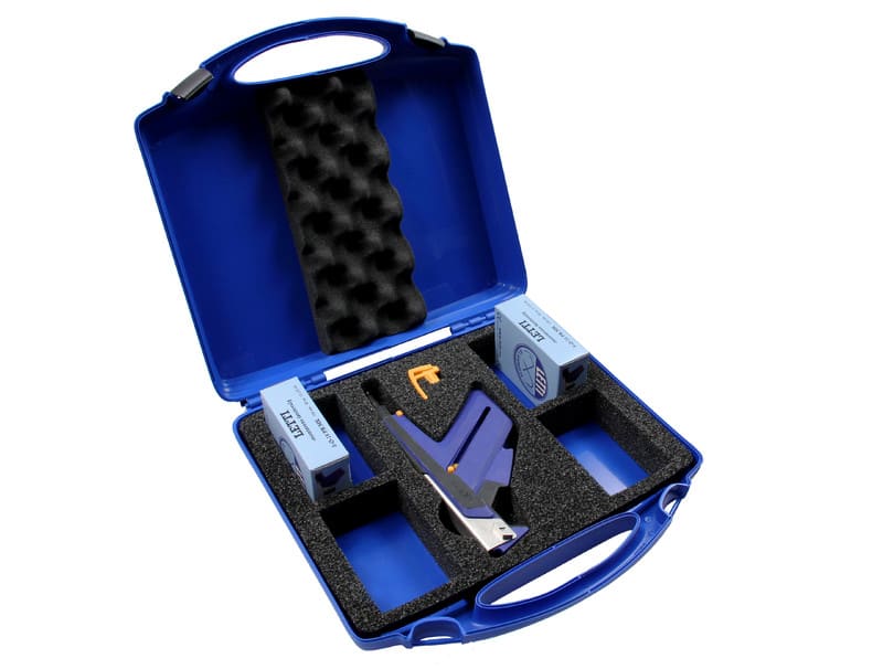 Pakkauksen sisältö: 1 kpl Letti kasettityökalu (6424900), kiinnikkeet150 kpl 8-R-16PM (1300613) ja 150 kpl 10-R-16PM (1300615) sekä muovinensäilytyslaatikko. Laatikkoon mahtuu työkalu ja 4 kiinnikerasiaa.