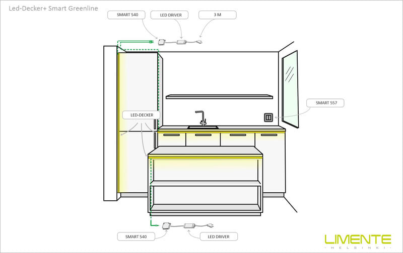 LIMENTE DECKER -alumiiniprofiili valaisee sekä eteenpäin että sivuille ja siinä on erillinen kiinnityslista, jonka sisälle mahtuu myös led-nauhan syöttöjohto. Profiilin avulla voi korostaa kalusteiden muotoja sijoittamalla profiili kalusteiden väliin, jolloin muodostuu valoraita tai profiilia voi käyttää yleisvalona esim. peilikaapissa, jolloin valo suuntautuu miellyttävästi kolmeen suuntaan. Profiilin mukana tulevat tarvittavat kiinnikkeet ja päätypalat. DECKER-alumiiniprofiilin asennus on helppoa ja alumiinilista sekä viimeistelee asennuksen siististi että pidentää led-nauhan elinikää toimimalla led-nauhan jäähdytyspintana. RIBBON -valonauhan voit valita useista eri vaihtoehdoista ja niitä on saatavissa eri pituisina, eri tehoisina ja eri kotelointiluokilla. Huomaa, että led-nauha ja virtalähteet on tilattava erikseen. Toimitussisältö: alumiiniprofiili 2m, diffuusori 2m (suojus), asennuskisko 2m, päätykappaleet x 8.