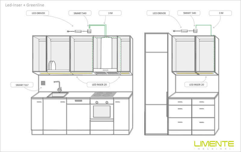 LIMENTE INSER on kalusteisiin asennettava alumiiniprofiili. Profiili upotetaan kalusteen tasoon ja näkyviin jää ainoastaan tyylikäs ja kapea profiilin reuna. Profiilin suojus (diffuusori) on hiukan kaareva, kun LIMENTE INSER MINI -profiilissa se on täysin suora. Käyttökohteina ovat niin keittiön välitilat kuin kaikki erilaiset hyllyt ja tasot, joihin halutaan työskentely valoa. Vastaavasti epäsuorana valona profiilia voidaan käyttää pöytätasojen alapuolella, sokkeleissa tai hyllyjen/kaappien päällä. INSER on ainoastaan 8,5 mm syvä mahdollistaen sen asentamisen lähes kaikenlaisiin levyihin. Alumiiniprofiilin pituus on aina 2 m ja se on lyhennettävissä. Profiilin mukana tulevat tarvittavat päätypalat. INSER-alumiiniprofiilin asennus on helppoa ja alumiinilista sekä viimeistelee asennuksen siististi että pidentää led-nauhan elinikää toimimalla led-nauhan jäähdytyspintana. RIBBON-valonauhan voit valita useista eri vaihtoehdoista ja niitä on saatavissa eri pituisina, eri tehoisina ja eri kotelointiluokilla. Huomaa, että led-nauha ja virtalähteet on tilattava erikseen. Toimitussisältö: alumiiniprofiili 2m, diffuusori 2m (suojus), päätykappaleet x 4.