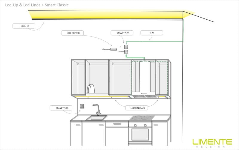 UP-alumiiniprofiili on tarkoitettu LED-RIBBON-valonauhan asentamista varten, kun halutaan luoda epäsuoraa valoa. Sen avulla voit koteloida led-nauhan ja käyttää sitä niin kodeissa kuin julkisissakin tiloissa, joissa halutaan valaista esimerkiksi kattoa. UP-profiililla on mahdollista toteuttaa kauniita ja tyylikkäitä epäsuoria valaistuksia kodin eri tiloihin. Yksittäisen alumiiniprofiilin pituus on 2 m ja se on lyhennettävissä haluttuun mittaan rautasahalla tai sirkkelillä, minkä jälkeen led-nauha asennetaan listan sisään. Profiilista on saatavissa värivaihtoehdot musta ja valkoinen. Profiilin mukana tulevat tarvittavat kiinnikkeet ja päätypalat. UP-alumiiniprofiilin asennus on helppoa ja alumiinilista sekä viimeistelee asennuksen siististi että pidentää led-nauhan elinikää toimimalla led-nauhan jäähdytyspintana. RIBBON-nauhan voit valita useista eri vaihtoehdoista ja niitä on saatavissa eri pituisina, eri tehoisina ja eri kotelointiluokilla. Huomaa, että led-nauha ja virtalähteet on tilattava erikseen. LIMENTE RIBBON IP20 ja LIMENTE RIBBON IP44 ovat himmennettävissä LIMENTE SMART CLASSIC, LUXUS ja GREENLINE -sarjalla (24 V himmennin nro 640540 ja sitä ohjaavat langattomat seinäsäätimet nro 640541, 640542, 640544, 640546 ja 640547. Himmennin asennetaan virtalähteen ja valaisimien väliin ja se sisältää vastaavan liittimet kuin virtalähde. Himmentimeen voidaan liittää 6 kpl LIMENTE-valaisimia, kunhan huomioidaan, ettei virtalähteen maksimikuorma (W) ylity. LIMENTE RIBBON IP44 CCT LUX on himmennettävissä LIMENTE SMART 560 -sarjan 24 V himmentimellä ja sitä ohjaavilla langattomilla seinäsäätimillä 640561 ja 640562. Himmennin asennetaan virtalähteen ja valaisimien väliin ja se sisältää vastaavan jakotukin kuin virtalähde. Toimitussisältö: valkoinen alumiiniprofiili 2m, diffuusori 2m (suojus) - piilokiinnikkee x 6, päätykappaleet x 4 alumiinia, ruuvikiinnitys.