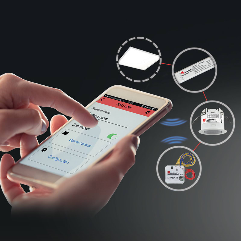 Plug and Play DALI-LINK:n käyttöönotto ja järjestelmän asetukset tehdään helposti älypuhelimen ja Bluetooth-yhteyden avulla.