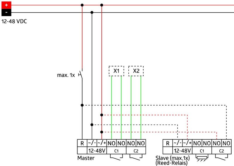 - Rinnankytkettävissä, enintään 2 kpl tunnistimia. Slavekytkennöissä, slave-tunnistin tulisi olla PD2-M-12-48V-RR -mallinen