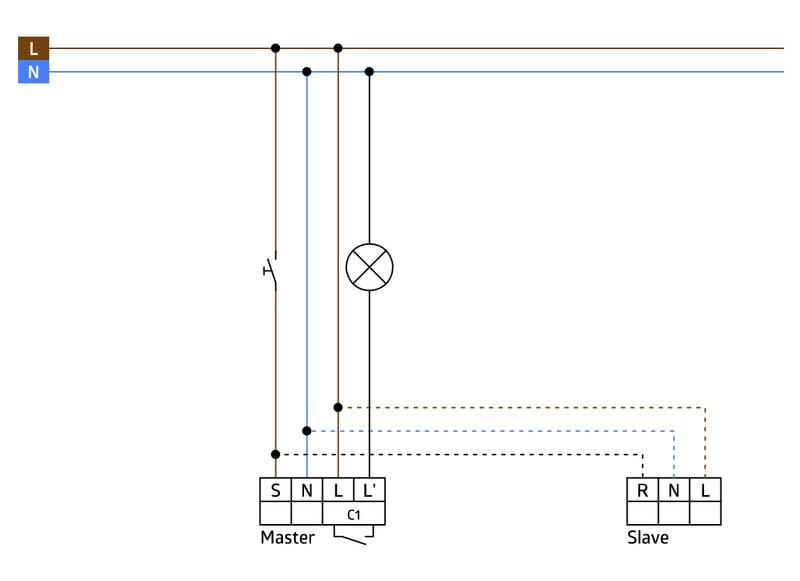 - Valaistuksen kytkentä yhdellä kanavalla, kytkentäteho 2300 W (cos f = 1) tai 1150 VA (cos f = 0,5)