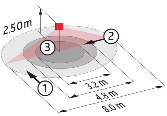 - Tarkka 360° valvonta-alue 8 m halkaisijalla