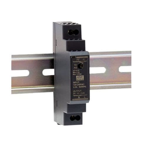 HDR15-24 on edullinen DIN-kiskoon asennettava muovikoteloitu 15 watin AC/DC-tasajännitelähde, joka tarjoaa yhden ruuviliitännöin toteutetun 24V 630mA syötön.