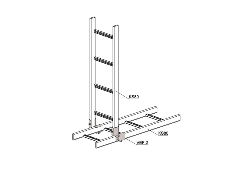 Pystyhyllyn kiinnikkeellä VEF 2 kiinnitetään pystysuuntainen tikashylly tikashyllyihin KS20, KS60, KSE80, KS80 ja KS80 SP2.0.
