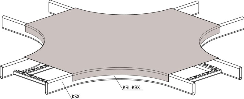X-kappaleen KSX kansi KRL-KSX suojaa kaapeleita kolhuilta, lialta ja auringonvalolta sekä viimeistelee asennuksen tikashyllyissä KS20, KS60, KSE80, KS80 ja KS80 SP2.0. Kannen säde on R=300 mm.