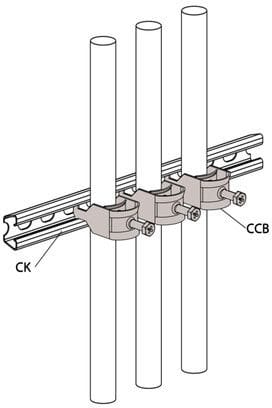 Kaarikiinnikkeellä CCB kiinnitetään kaapeleita lankahyllyihin WMT ja asennuskiskoihin CK.