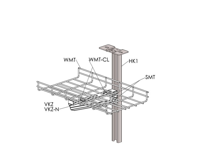 Kattokannakkeella HK1 kiinnitetään kattoon tikas-, levy- ja lankahyllyjä seinäkannakkeilla VKZ, VK ja VKF. Voidaan asentaa seinää vasten.