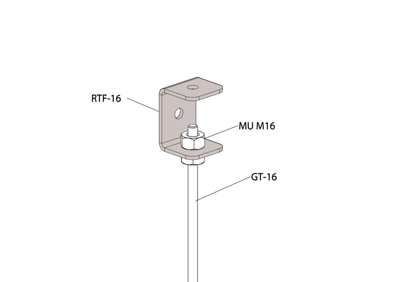 Kattokiinnikkeellä RTF-16 kiinnitetään kattoon kierretankoja GT-16.