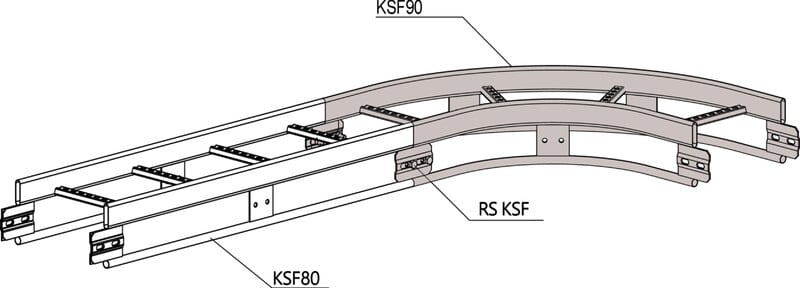 Kulmakappaleella KSF90 tehdään 90° kulma tikashyllyille KSF80. Kulmakappaleen säde on R=300 mm.