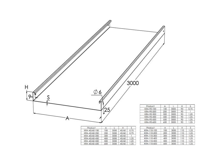 MEKA - Levyhylly maalattu s=1.25 - KRA-400M L=3000