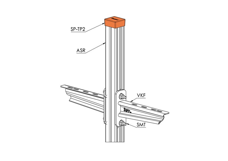 Suojatulpalla SP-TP2 suojataan päädyt asennuskiskoista ASR sekä kattokannakkeista TP2.