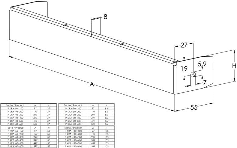 Levyhyllyn leveys - 400 mm