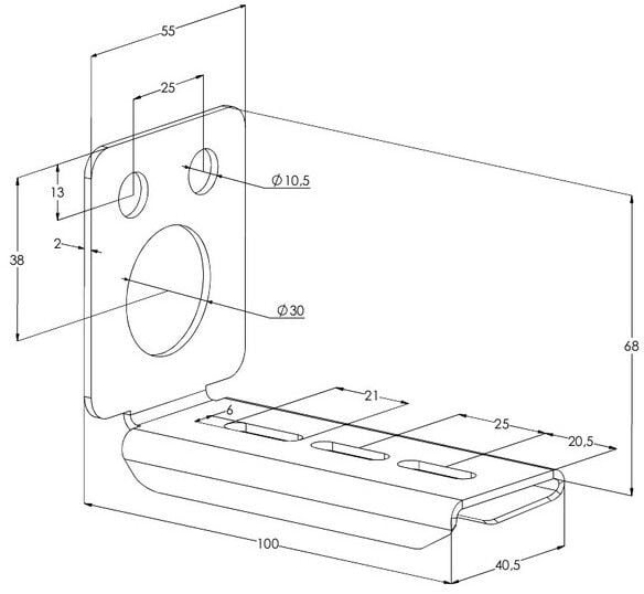 Päätykiinnikkeellä MEK PK kiinnitetään valaisinkisko AluMEK, MEK 70 S, MEK 70 K, MEK 70 ja MEK 110 seinään.
