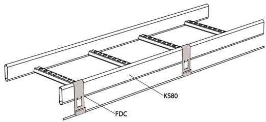 Kaapelikiinnikkeellä FDC kiinnitetään paloilmoitus- ja merkinantokaapeleita tikashyllyjen KS20, KS60, KSE80, KS80 ja KS80 SP2.0 alapuolelle.