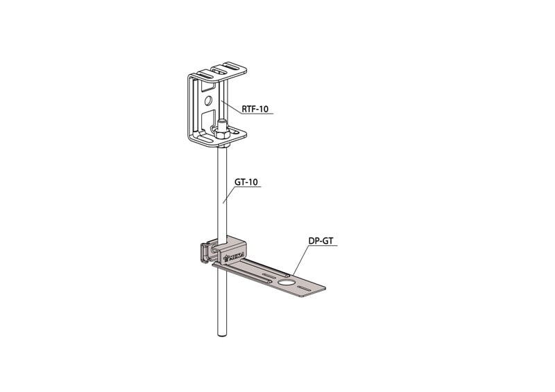 Asennuslevyllä DP-GT kiinnitetään paloilmaisimia ja asennuskalusteita kierretankoihin GT-10.