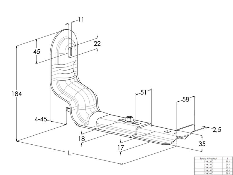 MEKA - Säädettävä seinäkannake, sisäpuol. - SVK-600 PG