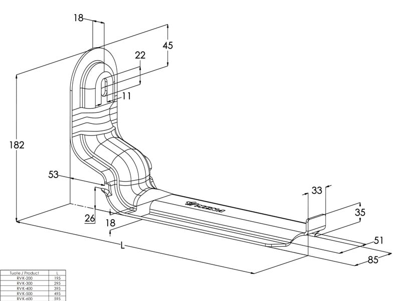 Malli / Tyyppi - seinä- ja profiilikonsoli