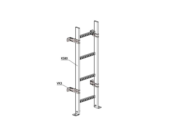 Seinäkiinnikkeellä VK3 kiinnitetään seinään tai lattiaan tikashyllyjä KS20, KS60, KSE80, KS80 ja KS80 SP2.0. Pidempi varsi antaa lisätilaa tikashyllyn ja kiinnityspinnan väliin.