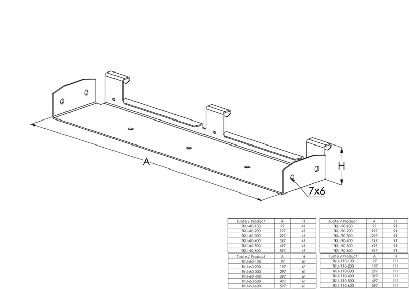 Levyhyllylähdön leveys - 100 mm