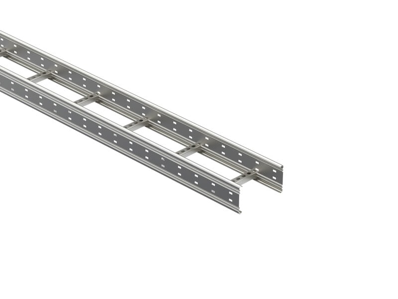 Pitkän jännevälin korkeareunainen tikashylly rei'itetyllä sivuprofiililla. Korkeammassa kaapelitilassa myös paksummat kaapelit jäävät suojaan katseilta ja sivusuuntaisilta kolhuilta. Soveltuvia asennuskohteita ovat teollisuus- ja energialaitokset sekä suuret hallit ja varastot.