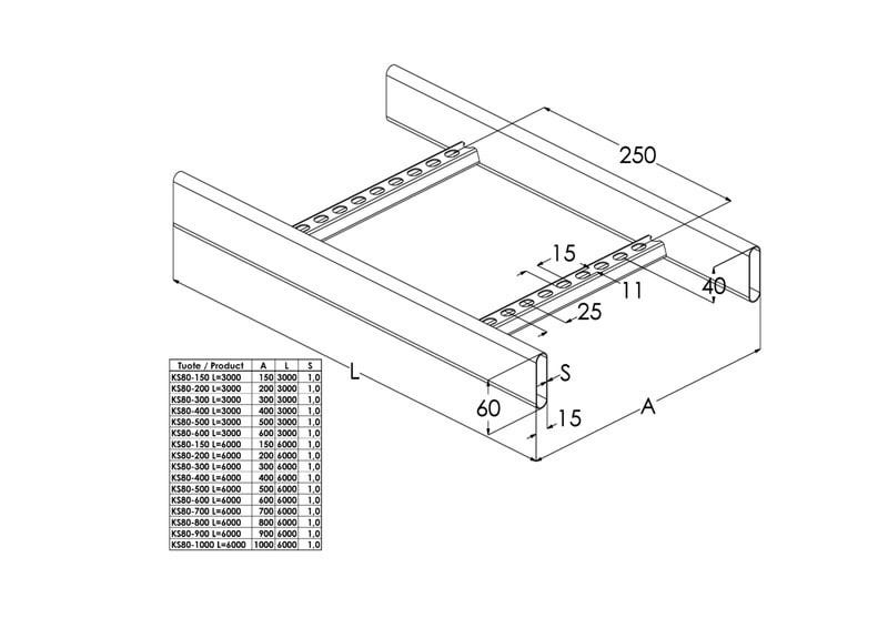 MEKA - Tikashylly - KS80-600 L=3000 HDG