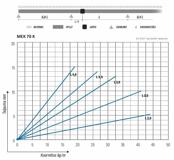 Kantava valaisinkisko. MEK 70 K valaisinkisko sopii monipuolisesti valaisinasennuksiin. Soveltuvia käyttökohteita ovat esimerkiksi toimisto- ja liikerakennukset, kauppakeskukset, koulut ja parkkihallit. Yhteensopiva MEK 70 ja MEK 70 S järjestelmien kanssa.