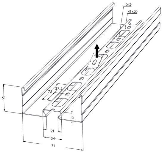 MEKA - Valaisinripustuskisko sinkitty - MEK70 K L=6m XPG ainev.0.75mm