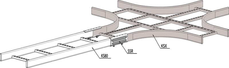 X-kappaleella KSX tehdään X-risteys tikashyllyille KS20, KS60, KS80 ja KS80 SP2.0. X-kappaleen säde on R=300 mm.