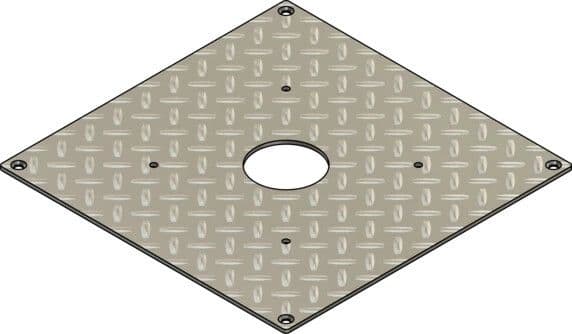 Asennuslevy E-fundament Modula 600x600mm:lle. Valmis rei'itys Kempower-satelliittilatureille, joiden keskireikä on 110Ø. Asennuslevy sopii seuraaviin Modula-perustuksiin: 5229095 (Modula 600x600x600).