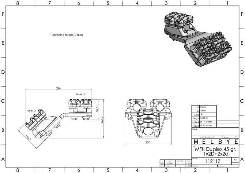 MELBYE - Pääteliitin - Dupl 45° 1x37-47 2D 2x17-37 2d