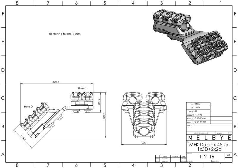 MELBYE - Pääteliitin - Dupl 45° 1x37-47 3D 2x17-37 2d