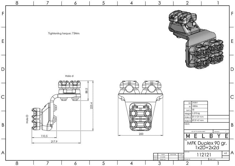 MELBYE - Pääteliitin - Dupl 90° 1x37-47 2D 2x17-37 2d