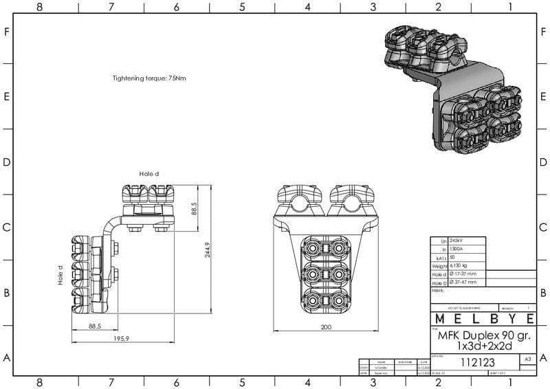 MELBYE - Pääteliitin - Dupl 90° 1x7-37 3d 2x17-37 2d